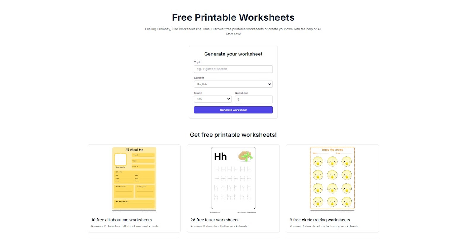 Whether you're a teacher enriching classroom instruction or a parent facilitating at-home learning, worksheet generator provides invaluable tools to support educational growth effectively and efficiently.